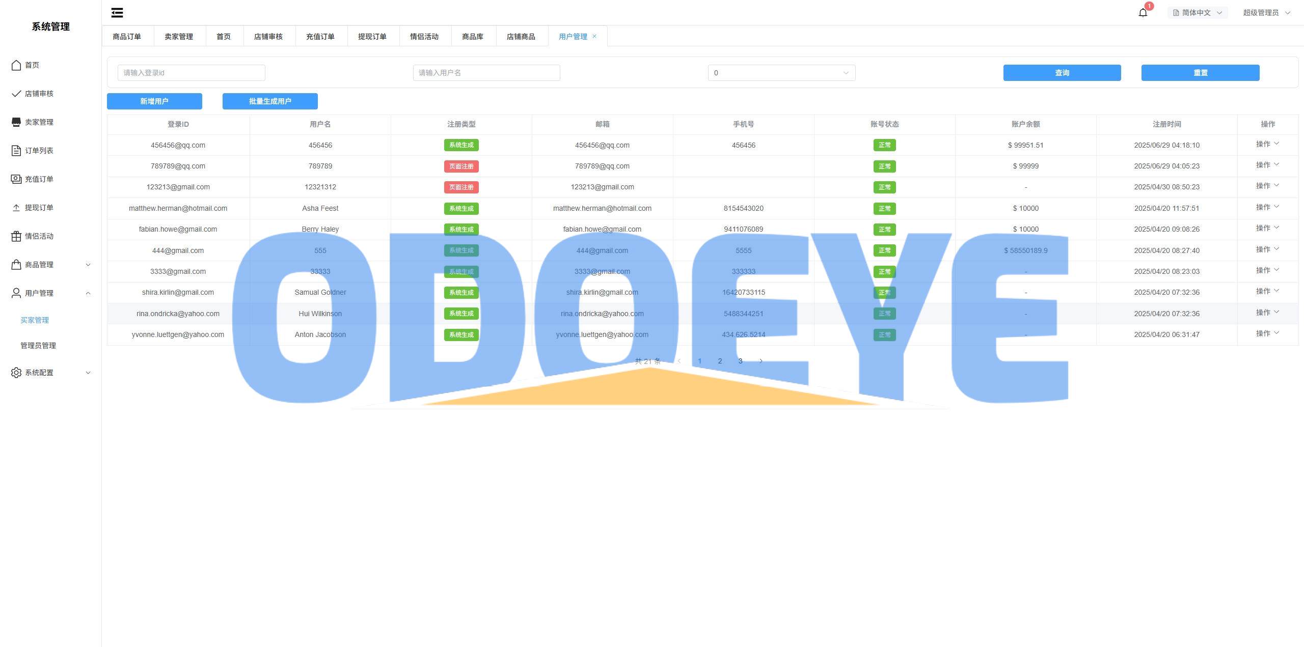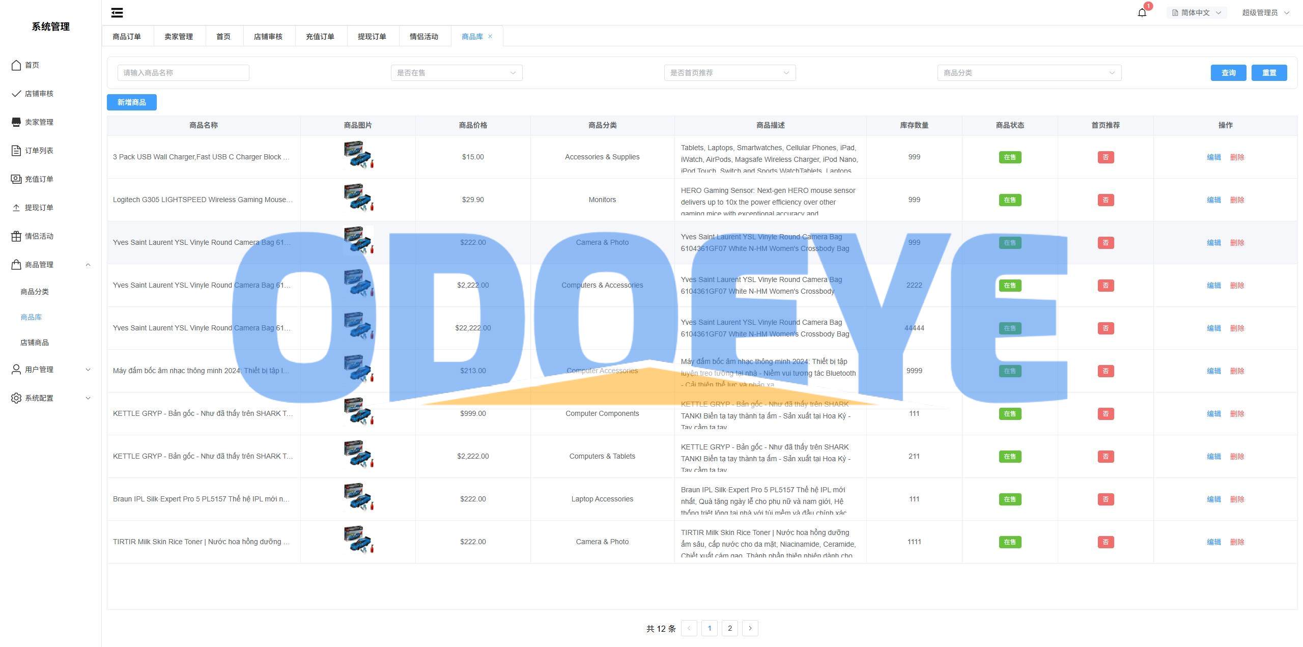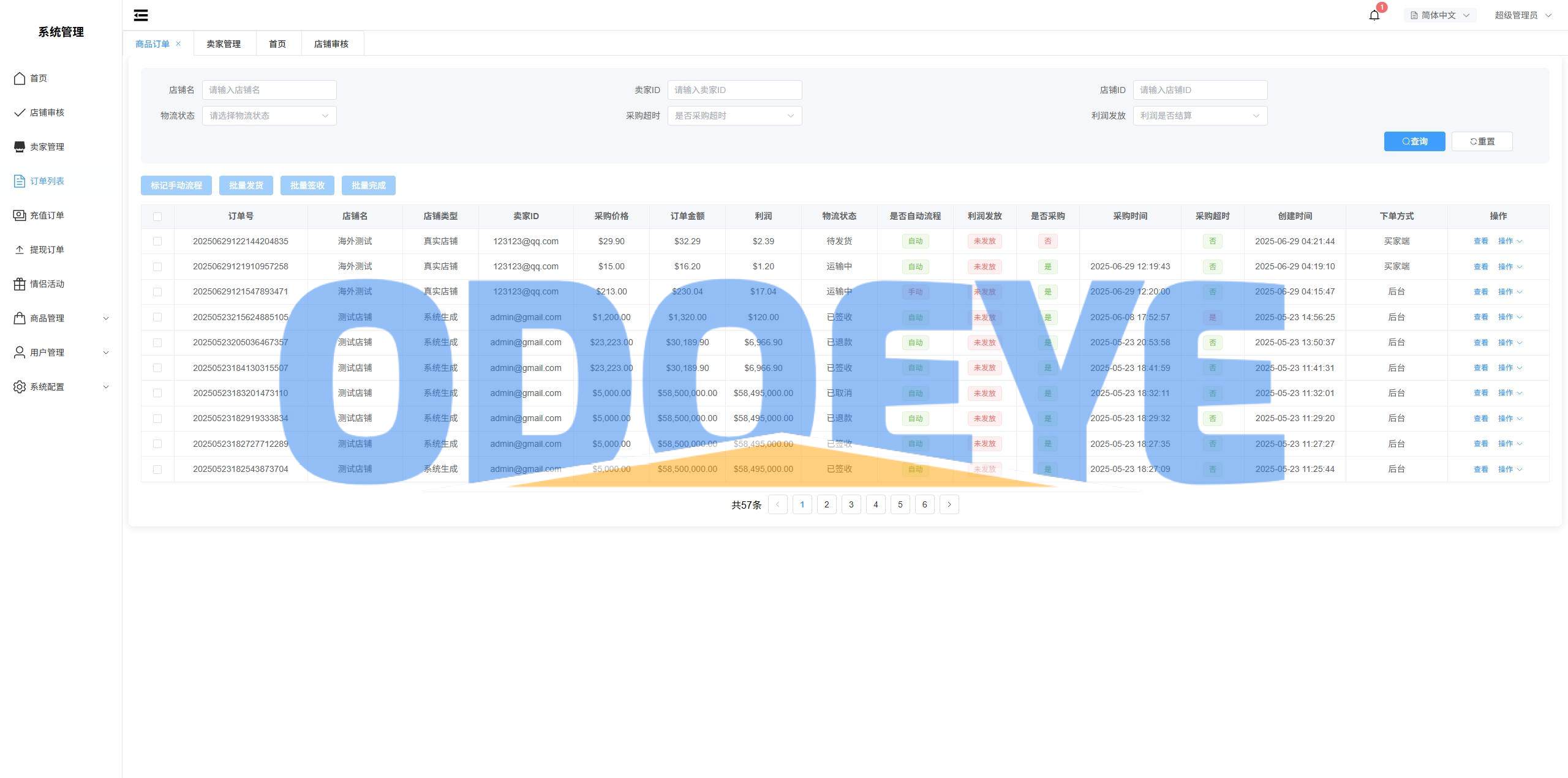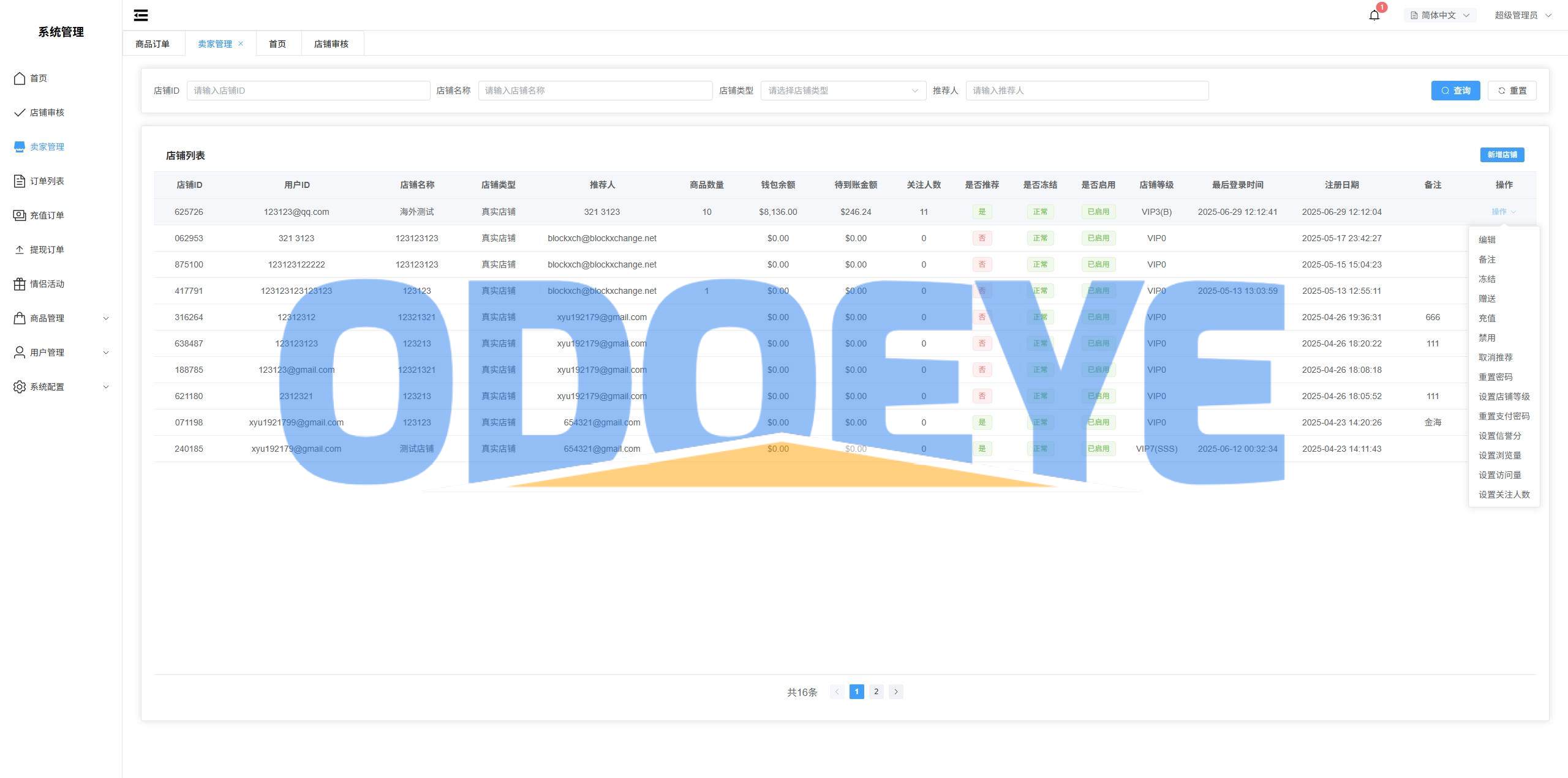 系统无商品需要自己添加,支持设置商户访问量,信誉分,关注人数,后台手动下单等功能