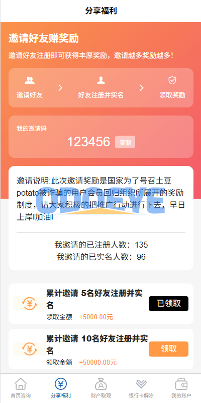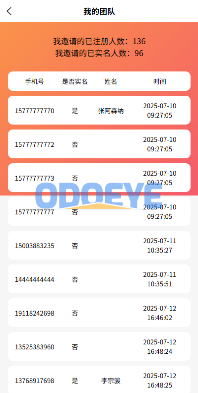 ✅ 实时统计:邀请总数 / 已实名人数 / 奖励达标进度