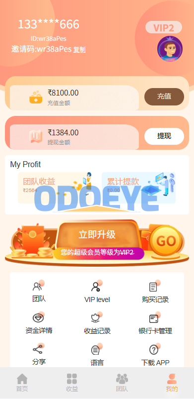 ODOEYE 独家精品 多语言投注理财系统/推广分销/营销裂变/前端VUE https://www.odoeye.com/6860.html