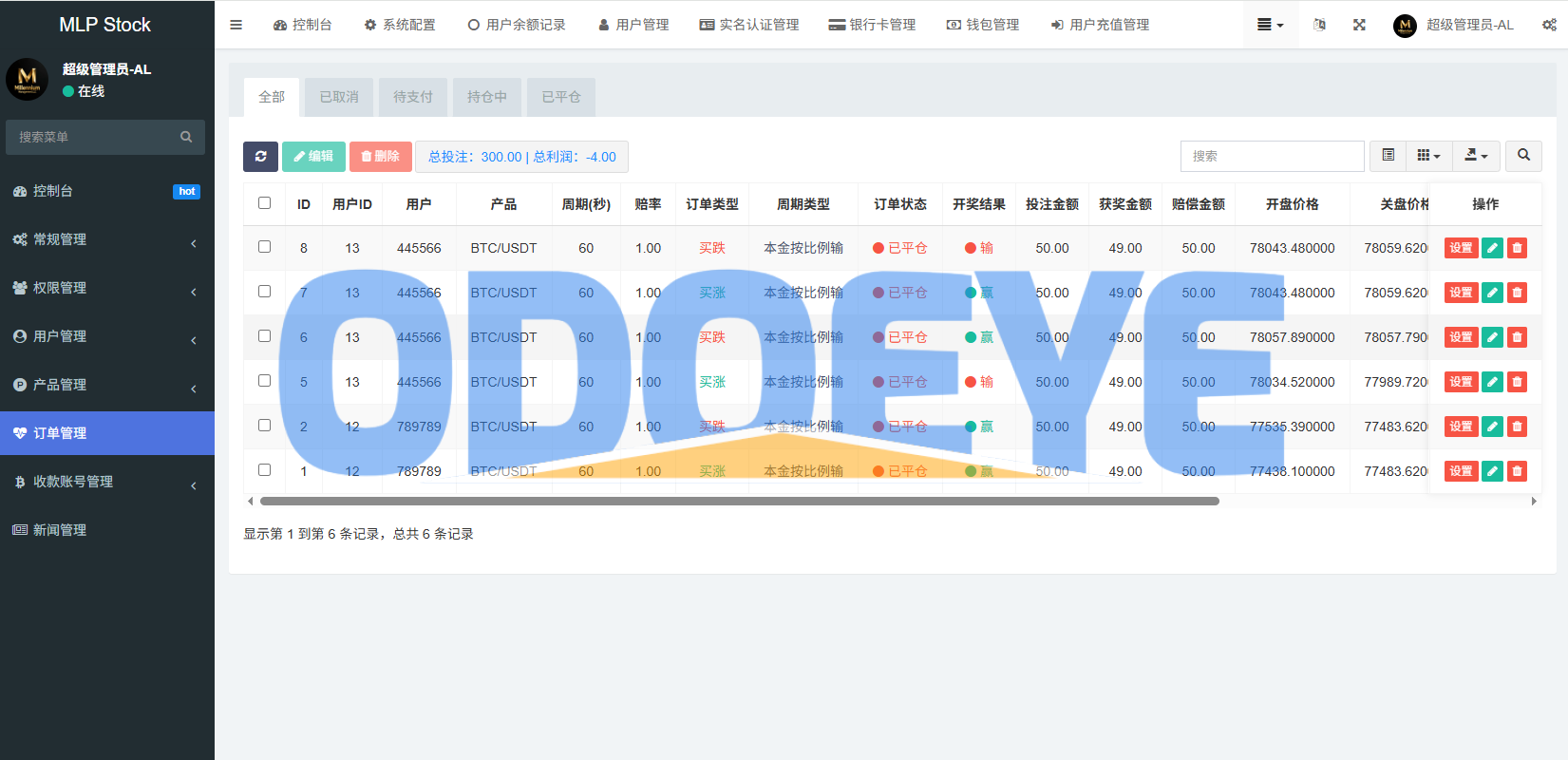 系统功能:信用分,实名认证,银行卡usdt充值提现,用户单控,订单控制等功能